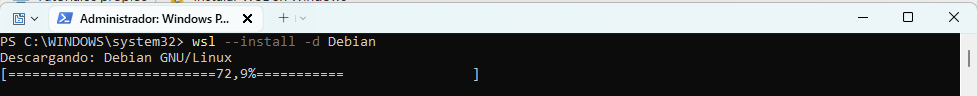 Una vez completado este paso, podemos acceder a una nueva terminal con Debian instalado
